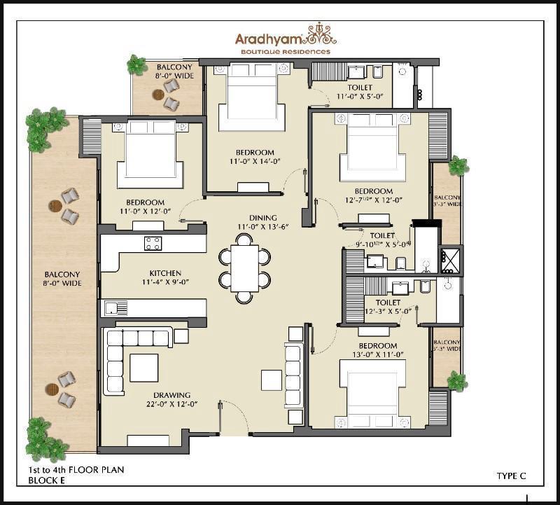 4 BHK (Four-bedroom) apartments: 2850–3629 square feet.